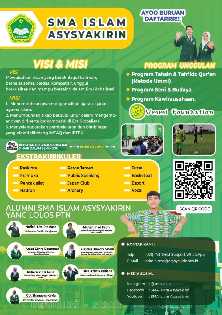 - Biaya pendaftaran Peserta Didik Baru SMA Islam Asysyakirin Tahun Ajaran 2025/2026 sebesar Rp. 1.750.000,- (Satu Juta Tujuh Ratus Lima Puluh Ribu Rupiah);
